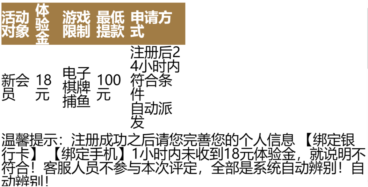 活动详情:注册绑卡绑定手机号申请18彩金打到100提款