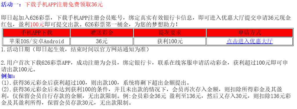 活动详情:下载APP注册绑卡优惠大厅 自助申请新人彩金送36 满100提现