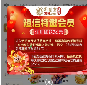活动详情:新用户注册活动里面去碰瓷特邀36彩金,可以先看看下方短信有没有,没有可以碰瓷试试吧,具体自测切记勿充值。