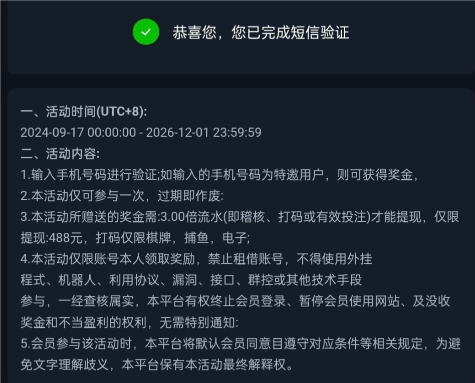 活动详情:新用户注册,必须要用常用绑定手机号码绑定,填写取款密码后,在优惠中找到,填写号码,即可领取8-188,具体自测切记勿充值。